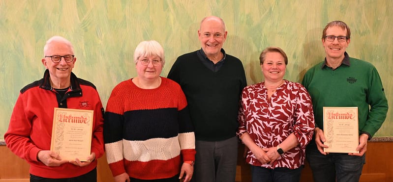 Neu gewählter Teilvorstand, Dirigent und die geehrten Sänger